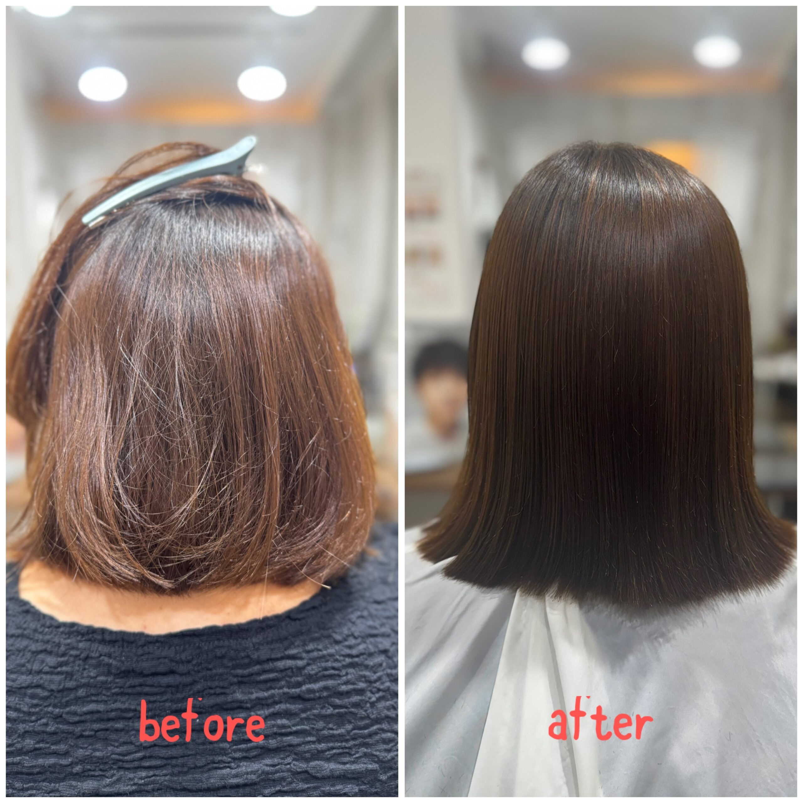 仕上がりは根元はしっかりと伸び、サラサラ、ツヤツヤで柔らかい仕上がりになりました。