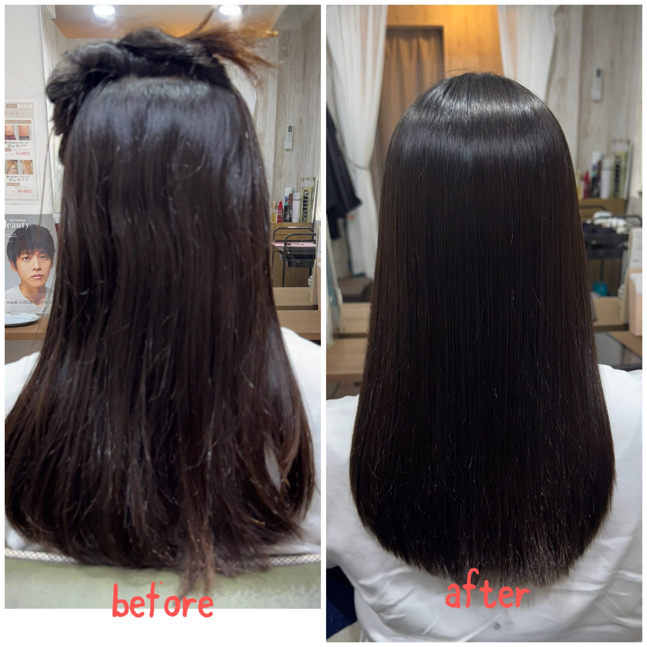 今回のお客様は根本から毛先まで大きなうねりがあるお客様でした。before写真がピンボケしていてすみません。